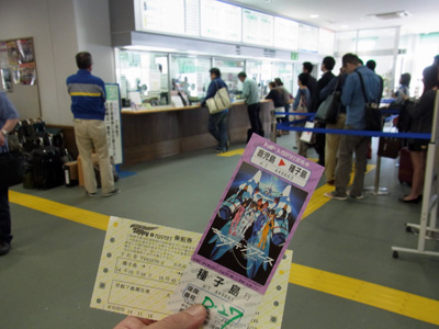 乗船の予約はwebからしてありましたが、ターミナルであらためて座席の指定を受けにゃなりません……が、列はグチャグチャ・その列も遅々として進みません。