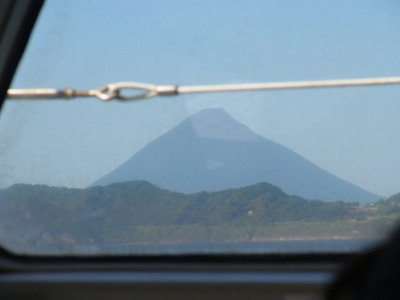 錦江湾は凪いでいたので揺れも小さく、船も80km/hでかっ飛ばしてましたが、