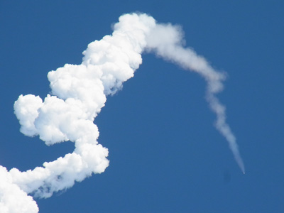 映画とかだとドーン!と点火してもゆっくり上がっていくような表現が多く、そういうもんだと思っていたら、本物は点火直後からガンガンに上昇していったのが意外……というか、総重量289tの物体がいきなりあんな勢いで上昇していく様子を目の当たりにして、