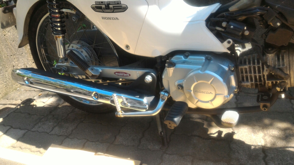 銀ロウで穴埋め&再塗装したマフラーをカブに取り付けました。
