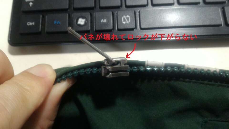 で、そんなある日にふとファスナーを観察していたら……これ、スライダーのロックが壊れてるだけじゃん?と気づきました。
