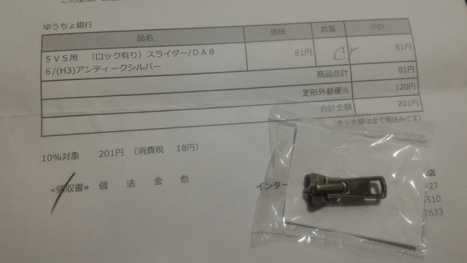 モノは81円+送料120円、銀振手数料は0円で済んだので計201円でゲッツ!