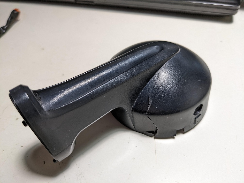 上下二か所に大きなひび割れが。下はともかく上は塞いでおかないと雨の日にウィンカー内へ浸水しそうで…。