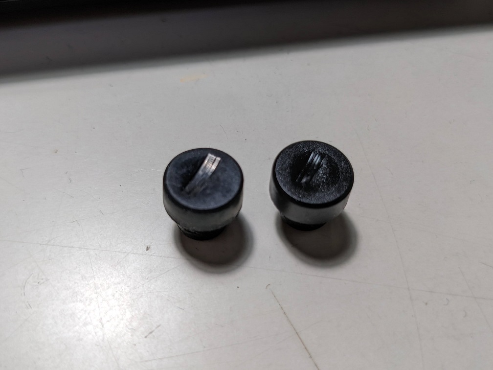 樹脂製の上止めをミニリューターで縦に割って外し、スライダーを入れ替え。