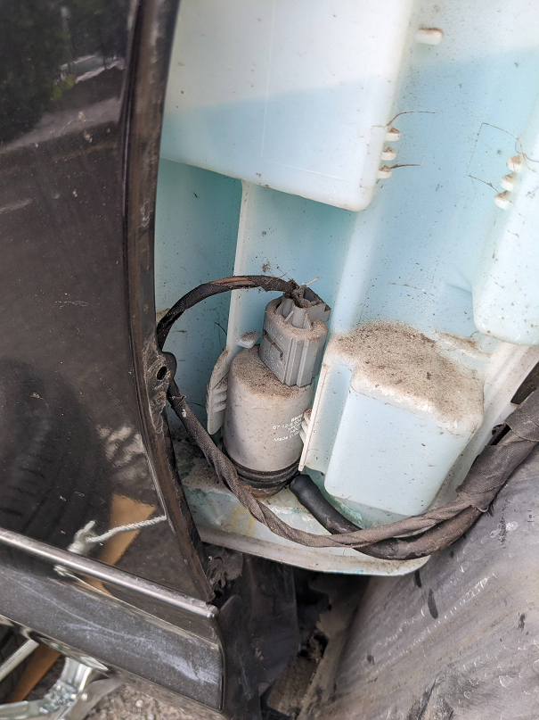 つーか、ウォッシャータンク&ポンプにアクセスするのになんでジャッキアップしてタイヤ外さにゃいかんのか…。