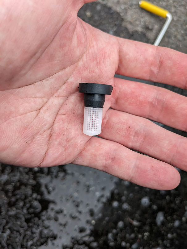 ストレーナーにもなんかドロドロしたのが詰まってる様子。なるほどこれが原因か。
