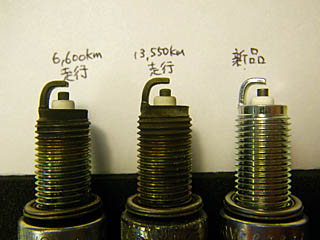 作業後、前回・今回交換した使用済みプラグと新品とを並べてみました。