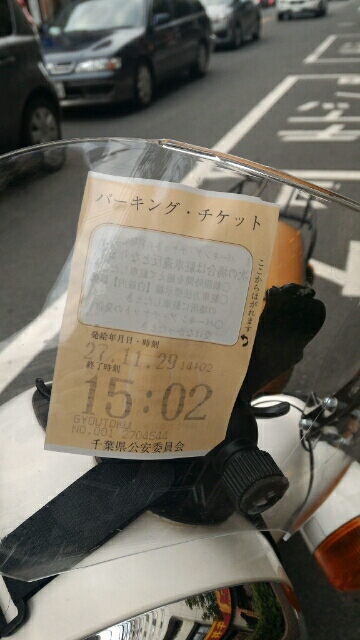 駅前にバイク駐車場が見当たらず、パーキングチケット発動。