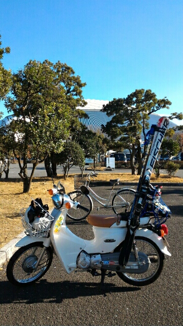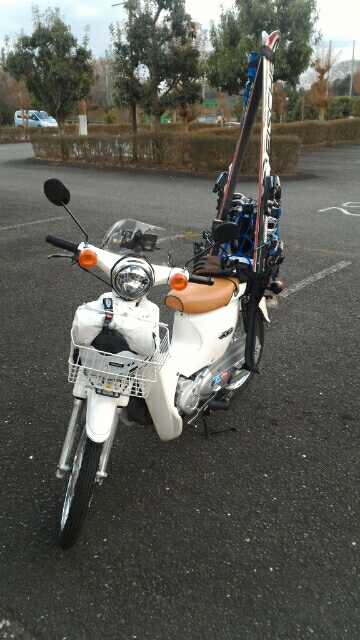 実は先週で仕事は納めてまして、カブにスキー積んで狭山にやって来ました。