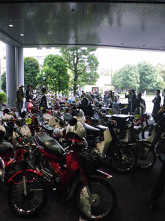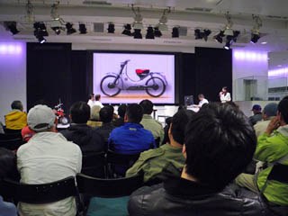 写真右:ホンダ2輪デザイナーを招いて開かれたバイクフォーラム。面白かった。