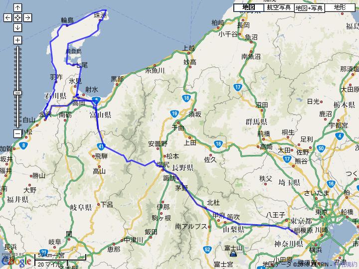 ということで、今度の「海の日」プレゼンツの3連休ツーのルートデータをGoogleマップ化してみました。