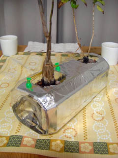 2リットルのペットボトルをくり抜いて、黄金週間用の植木鉢(?)を製作。