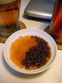 で、今日もその醤油漬けと塩すじこを適当に小皿に盛ってみたら、