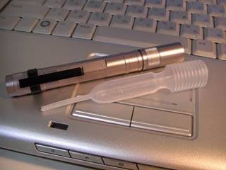 アルミテープが上への光を反射、スポイトのペコペコ部分のヒダが光を分散して、