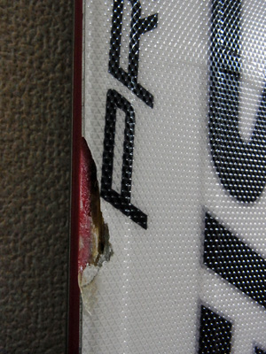 ぜんぜん別件ですが、先シーズンにトップコートが欠けて修理してみたスキー板、昨日のGALA湯沢で欠けたトコがばっちり割れちゃいました。