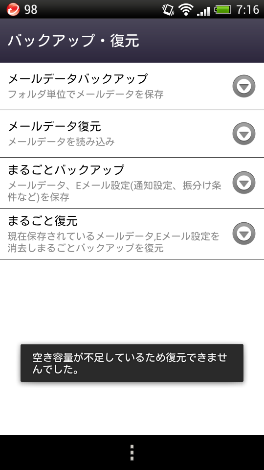 ちなみにメール移行前に新スマホで受信したメールも追加復元できるはずなんだけど、