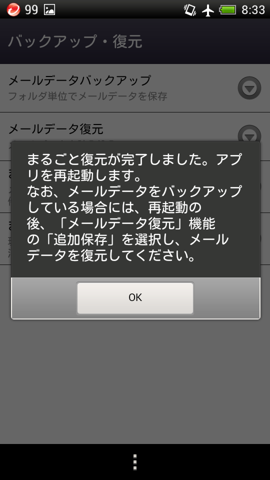 これで一通り復元できたけど、キャリアメールがすっからかんでした。