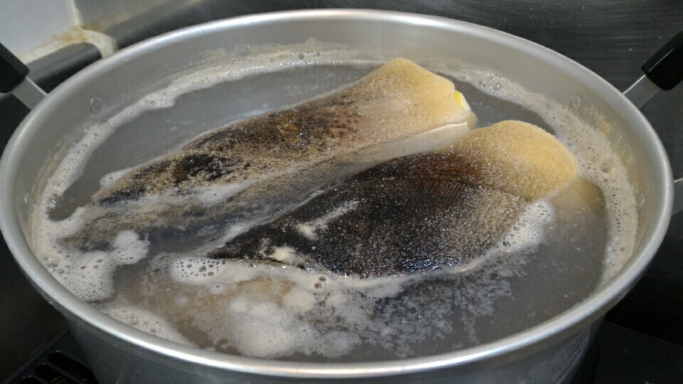 タケノコ茹で中。