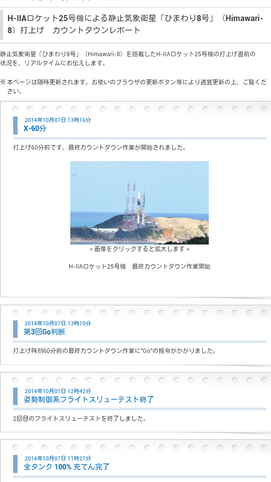 打ち上げ準備も第3回GO/NOGO判断でGO、X-60分で最終カウントダウン開始と、つつがなく進んでいるようです。