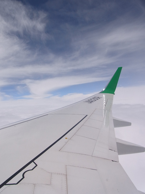 雲の下に出ると雨が降っていて小刻みに揺れ続けましたが、下ろしたフラップの端からヴェイパーを引いているのを目の当たりにして、レンズ付きフィルムの類を持ってこなかったことを盛大に後悔しました…。