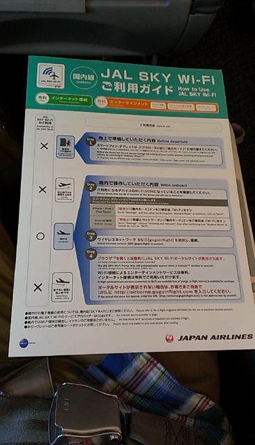 シートポケットには「JAL SKY Wi-Fi ご利用ガイド」が入ってたので一読。ふむふむ。