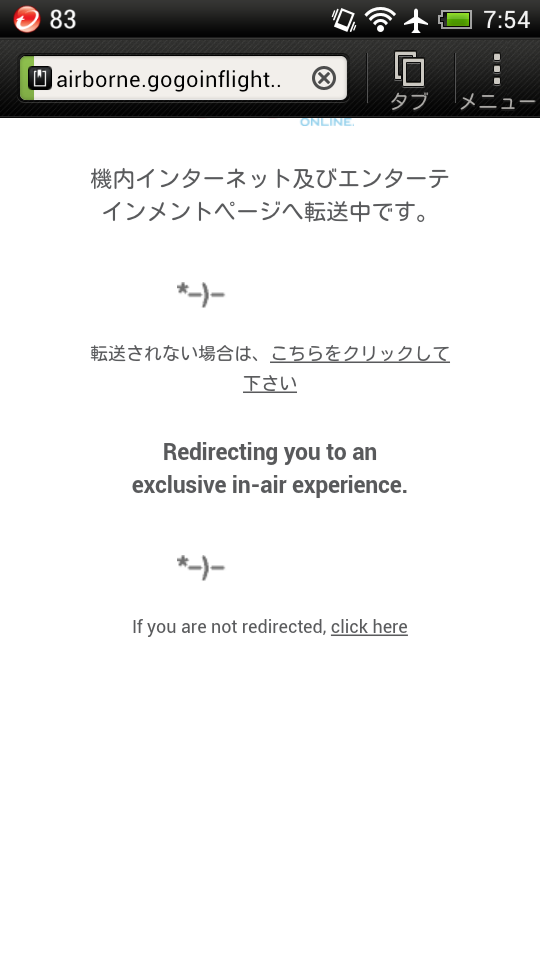 "airborne.gogoflight…"って、いかにも「お空飛んでます」的なアドレスでなかなか面白いなぁと思って待ってると、