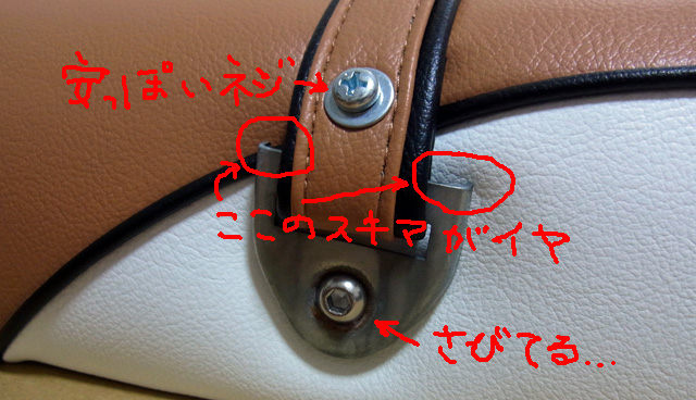 もともと付いていた金具が安っぽいのが原因なんだけど、どうにも気に食わず…。
