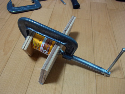 ウコン飲料の空き缶を真っ二つにして、ガス噴出孔開けて、