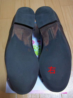 実は通ってる整体院のセンセから「右足ねじれてますね」と言われていて、仕事で履いている革靴を並べてみると、