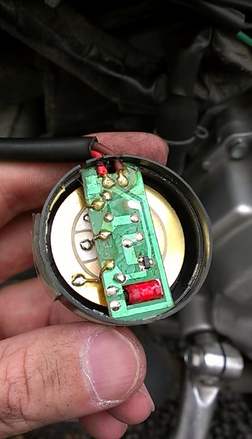 壊れたブザーから純正ハーネスを切り離し、買ってきたのに半田付けして完成。