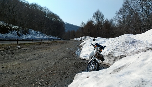ゴールドラインの峠にはまだまだ冬の名残が。
