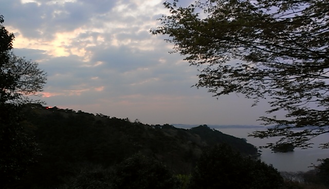 っつーか、正面の島かげから昇ってくる朝日を期待してやって来た訳ですが、見事に左手の山から昇ってくるという...