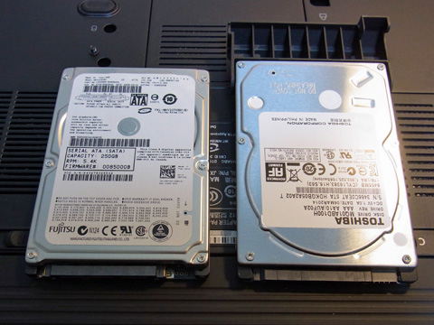 左のが今まで5年働いてくれた富士通 MHY2250BH。お疲れ。