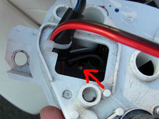 矢印の先にLEDがあるんだけど、暗くて見えないかな…。