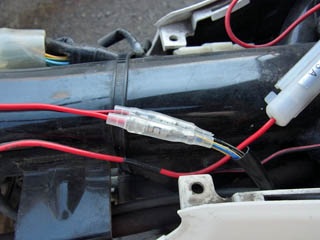 なのでケーブルを切ることはせず、壊れたランプのLEDの足を切り、そこにギボシをカシメカシメ。