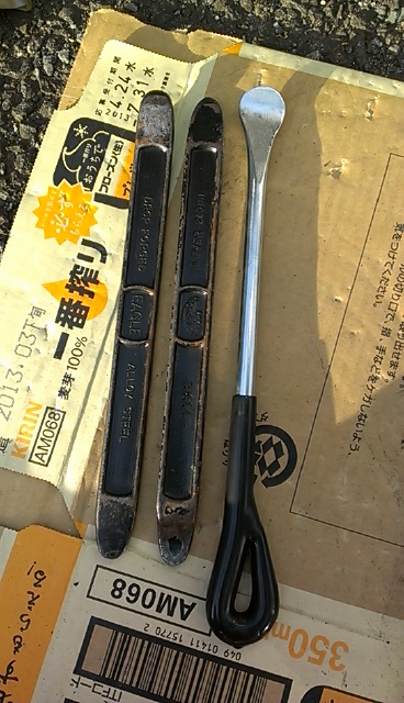 で、交換に際して新しくKIJIMAのスプーン型タイヤレバー(右)を導入した訳ですが…