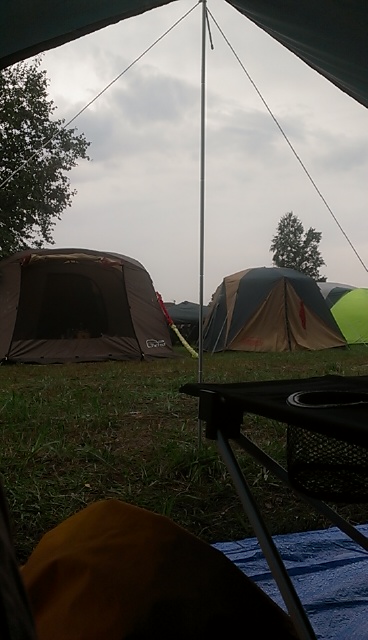 EGO-WRAPPINでいよいよパラッと来ましたが弱~い雨で済んで、テントに戻って寝てたらザーッと普通の雨になってました。