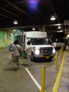 送迎の車に乗り遅れる訳にはいかないので、シコシコ出かける用意をし、集合時間の10分前の5:45にロイヤルハワイアンのお隣のシェラトンにあるバス乗り場に到着…