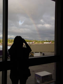 幸先の良いことに、ヒコーキ待ってたら虹が見えました。