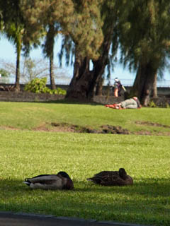 昼寝中のハワイマガモと地元民。地元民もデカい!
