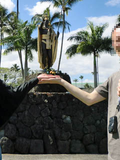運転手兼ガイドの日系のおっちゃんの名調子に案内されて、カメハメハ大王像で夫婦合作写真。
