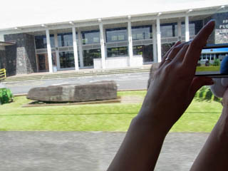 次のポイントに向かう道すがら、カメハメハ大王が持ち上げたという巨石がありました。