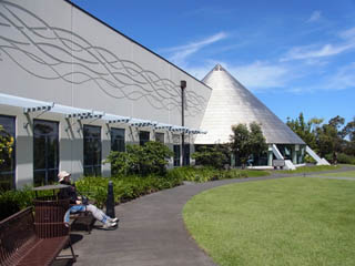 ちなみに建物はこんな感じ。新しいと聞いたけど、近未来的っつーかなんつーか。