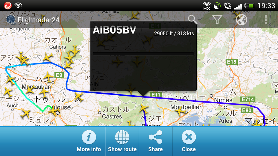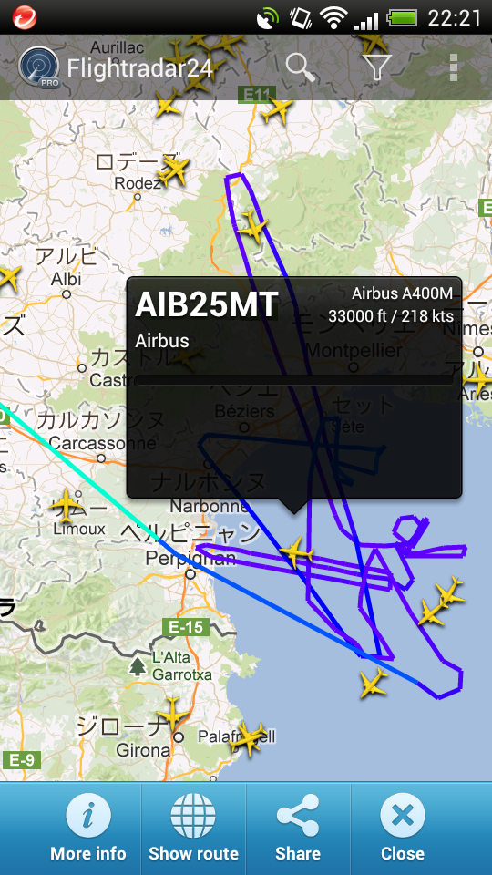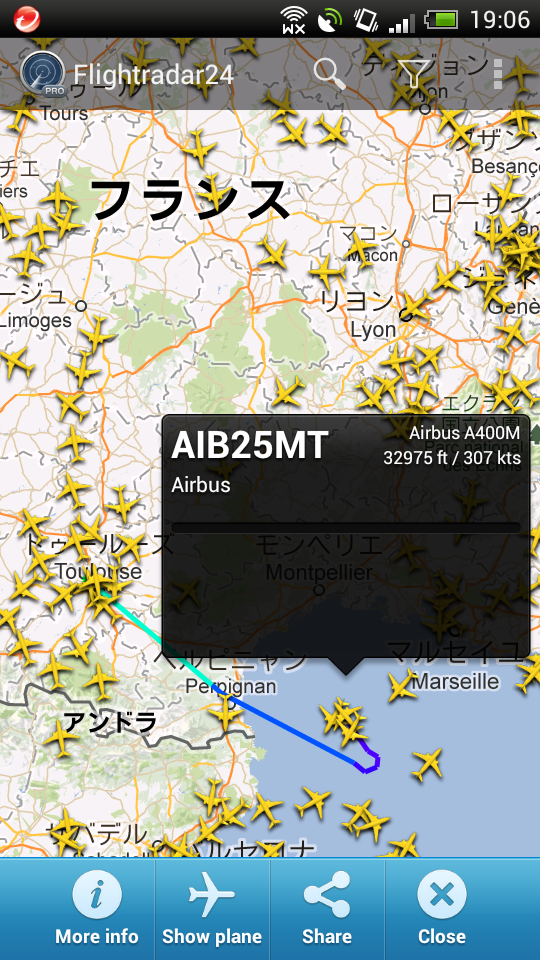 マイ・スマホにゃFlightradar24Proというすばらしいアプリが入っています。