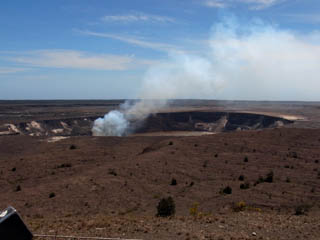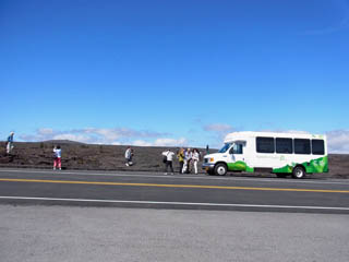 学食の中華バイキングでお腹いっぱいになったところで、名調子のガイドさんが運転するバスはいよいよキラウエア火山の火口見物に向けて、なだらか~な上り坂を一定のペースで登り始めました。