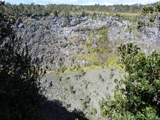 Chain of Craters Roadは海岸で行き止まりの道なのでこの辺りから来た道を引き返し、とある火口(クレーター)へ。こりゃやまびこが響きそうな…。