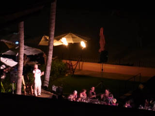 部屋の窓から下を見ると、ポリネシアンショー?やってました。