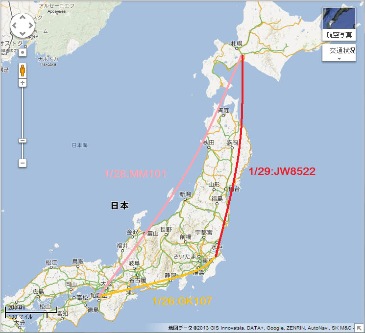 ご存知の方はご存知でしょうが、1/26~1/29までで国内線を運航しているLCC3社、すなわち