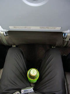 荷棚に入れなかった手荷物は離着陸時には前の座席の下に入れるべきなんだろうけど、ペットボトルなんか立てたら倒れるだろうし寝かせたら転がるだろうし、結局ずっと手に持ってました。
