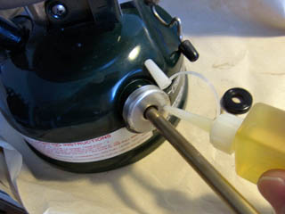 ポンピング前に必殺・リュブリカント投入。説明書きには「2~3滴」って書かれてましたが、先っぽを穴に突っ込んじゃったらまるで見えませんので、テケトーに(汗)。
